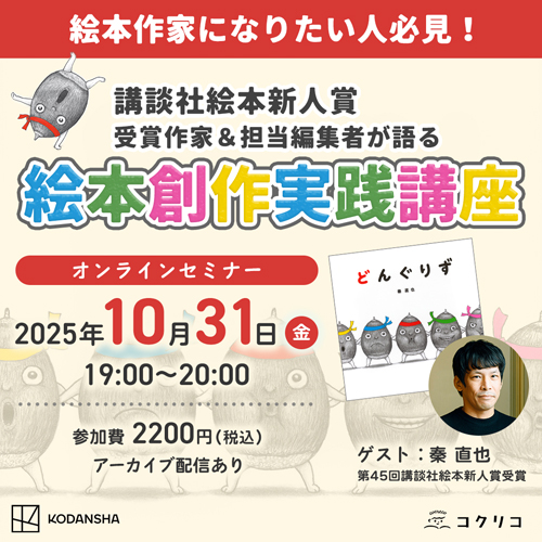 講談社絵本新人賞オンラインセミナー、受賞作家と担当編集者が語る「絵本創作実践講座」 10月31日(金) 19:00~ ライブ配信に参加します。